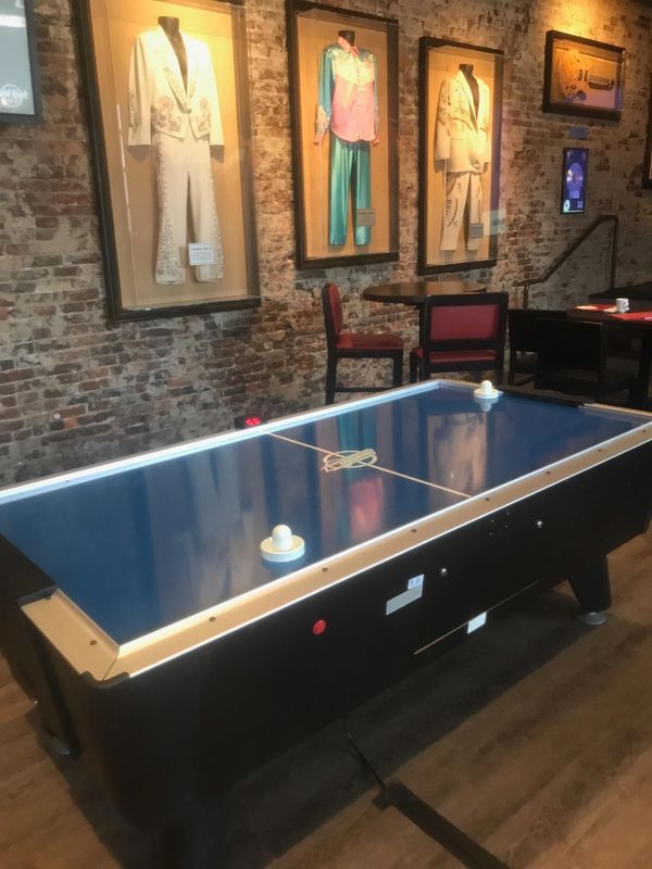 Our Dynamo air hockey tables are full-size, professional tables, always set to free-play. Branding and customization options are available